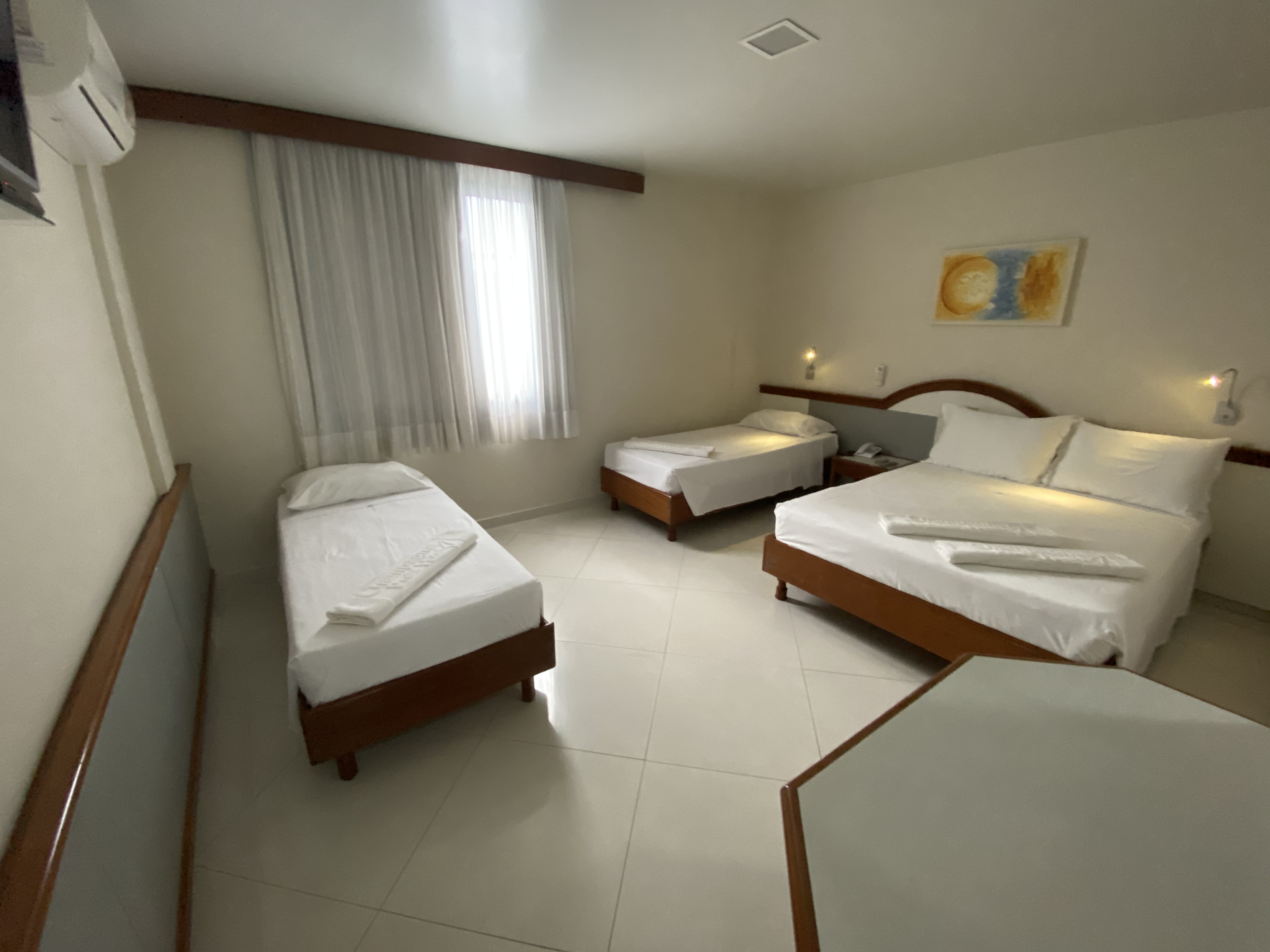 Todos os quartos possuem piso frio e são equipados com ar-condicionado, TV de LED, frigobar e banheiro privativo. Os quartos master contam com uma varanda privativa.